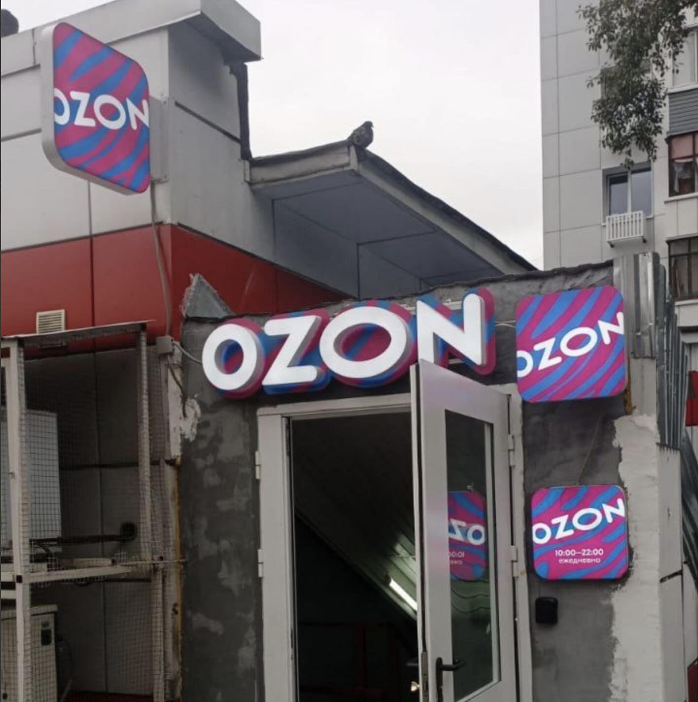Поверните налево ЗАХОДИМ ВО ДВОР ФАБРИЦИУСА 22С1 ориентир — вывеска Ozon - Вам туда.